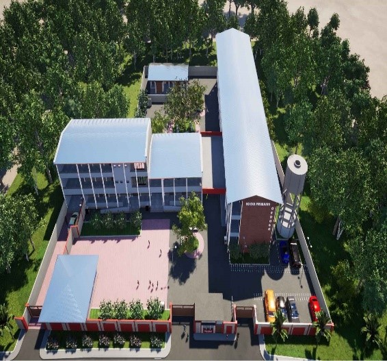 Construction of 5 schools (CES of CAP ESTERIAS built on 2 ha, Alibandeng School Complex (Kiliba) built on 2.6 ha, Ondogo Primary School built on 0.40 ha, CES of Avorbam built on 0.83 ha, CES of Angondjé built on 0.52 ha) with R+1 buildings.